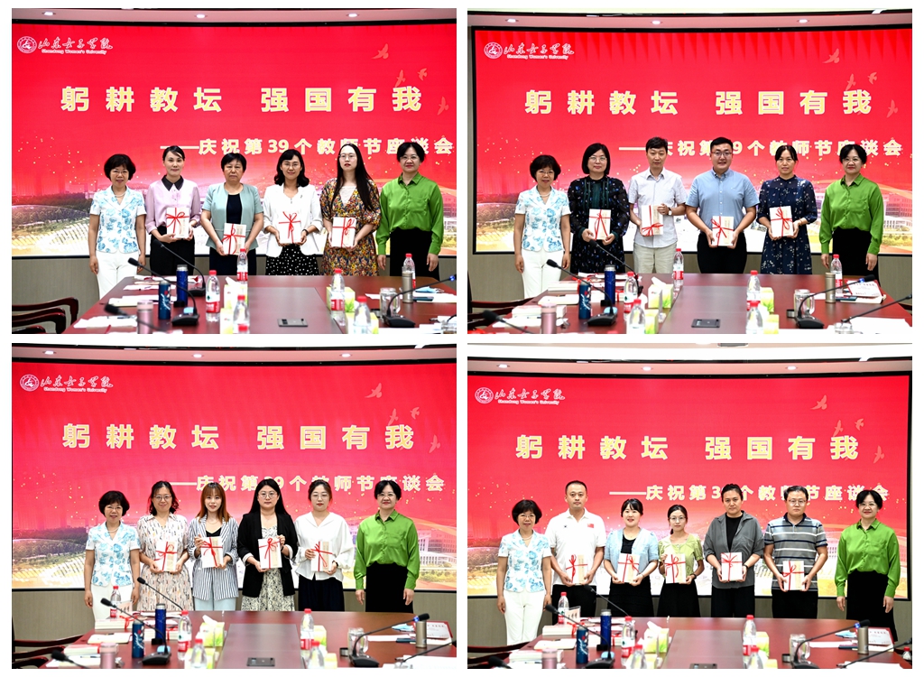 荣休教师代表李黎明、山东省第三批黄大年式教师团队负责人冯华、山东省优秀科技工作者沈传河、山东省教育系统2022年度党建研究课题一等奖获得者王兴盈、思政理论课教师石荣菊、全省首届高校党务工作者素质能力大赛一等奖获得者路敏、2019级健康服务与管理专业班主任赵娜、青年博士王倩倩、新入职青年教师公维民等9位教师代表先后发言,分享了作为教育工作者的感想和经验,回顾了学校的发展历程和近年来取得的显著变化,表达了对学校未来发展的信心,和继承老一辈教师的优良传统,落实立德树人根本任务,为学校发展贡献力量的决心。