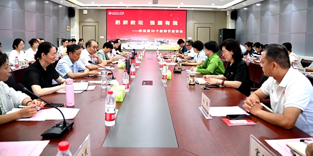 9月8日,在第39个教师节来临之际,学校在办公楼第三会议室召开庆祝第39个教师节座谈会。党委书记吕晓黎,党委副书记、校长李光红,党委副书记龙希利,副校长刘恩允等学校领导出席会议,相关职能部门负责人参加会议,来自全校各教学院部的25名老中青教师代表齐聚一堂,共话教书育人感悟,共谋学校事业发展。座谈会由龙希利主持。