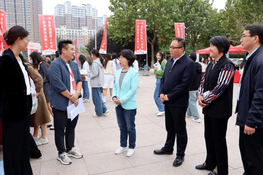 10月12日,“职引位来·就选山东”山东女子学院2023年秋季校园招聘暨访(联)企拓岗交流会在长清校区巾帼广场举行。学校党委书记吕晓黎、党委副书记龙希利与相关职能部门、各学院负责人同用人单位展开深入沟通交流。来自山东女子学院及周边高校6000余名毕业生参加招聘会。