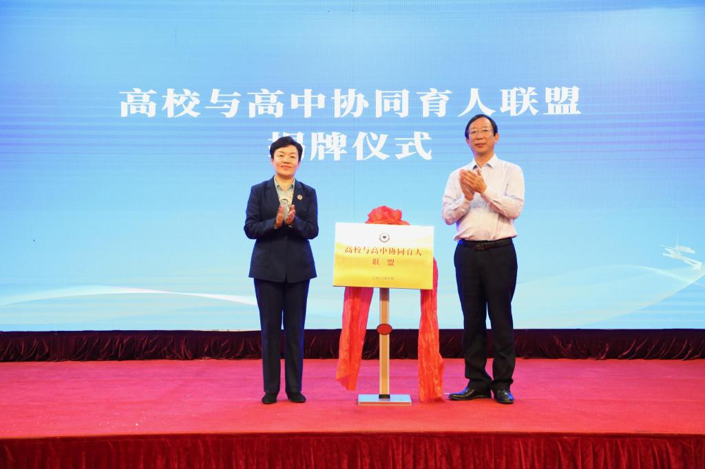 滨州市委教育工委常务副书记,市教育局党组书记、局长李美介绍了近年来滨州教育发展的成绩,并对活动举办的意义和作用给予肯定。田立新与滨州市委教育工委副书记、市教育局党组副书记、市教育科学研究院党总支书记、院长杨宝剑共同为山东高校与高中协同发展联盟揭牌。