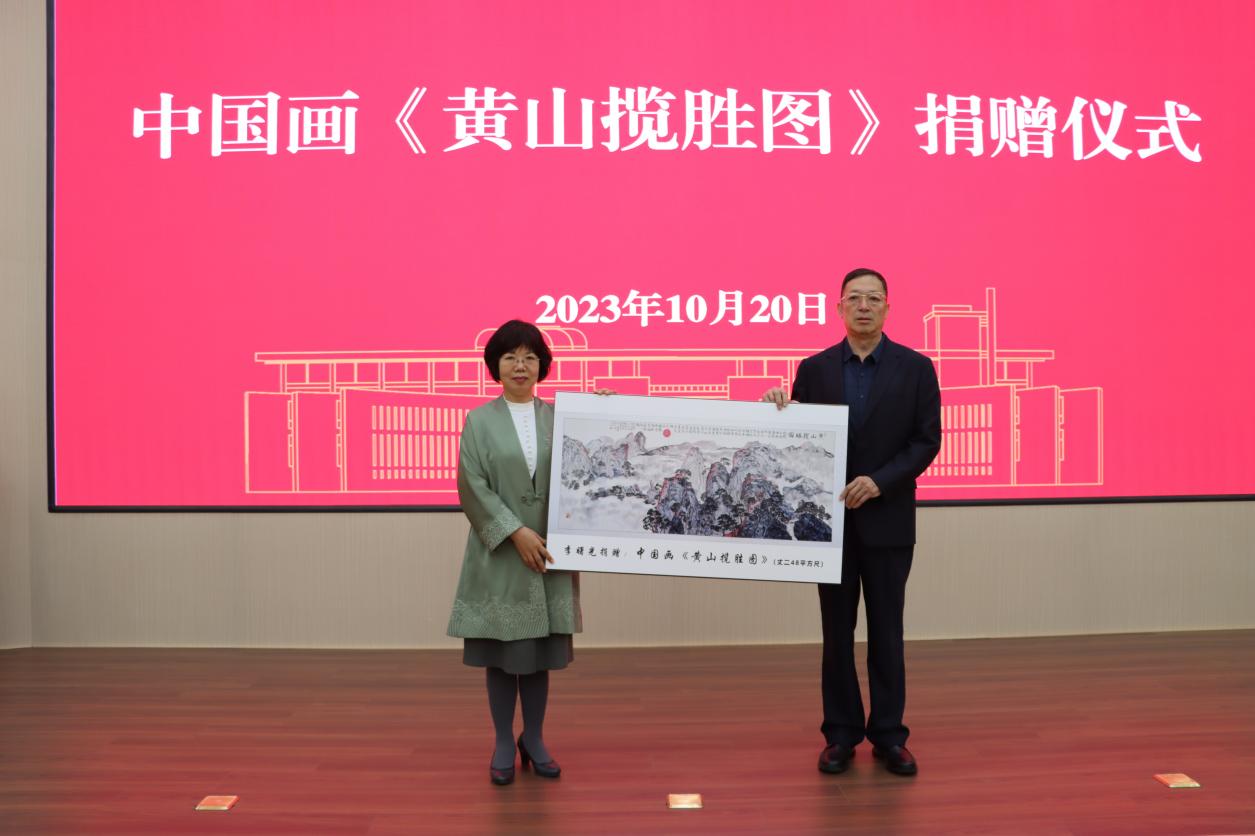 10月20日上午,学校在求真楼一楼报告厅举行中国画《黄山揽胜图》捐赠仪式,党委书记吕晓黎,党委委员、副校长李缨出席会议,党委、院长办公室,合作发展处(服务地方办公室)负责人及艺术设计学院师生代表参加会议。