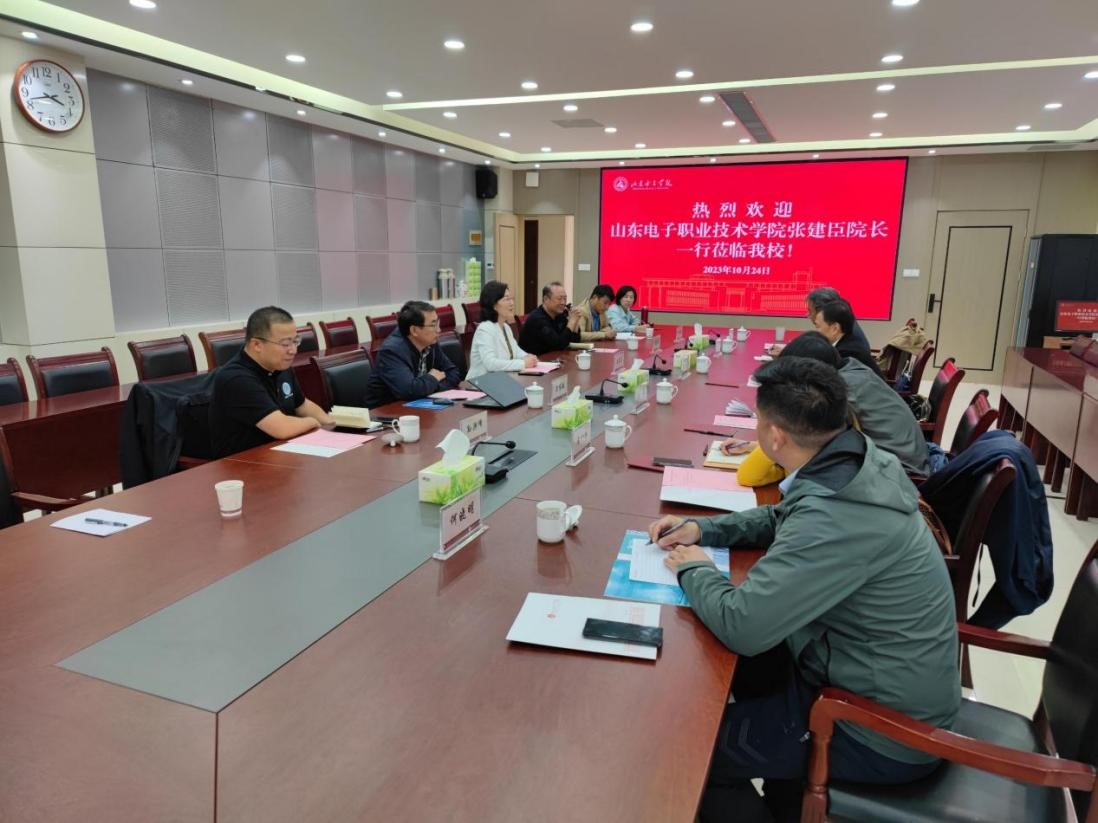 10月24日,山东电子职业技术学院张建臣院长一行来校调研交流。学校副校长刘恩允、招就处处长吕慎敏、数据科学与计算机学院党委书记潘建勋、院长孙洪峰参加座谈会。