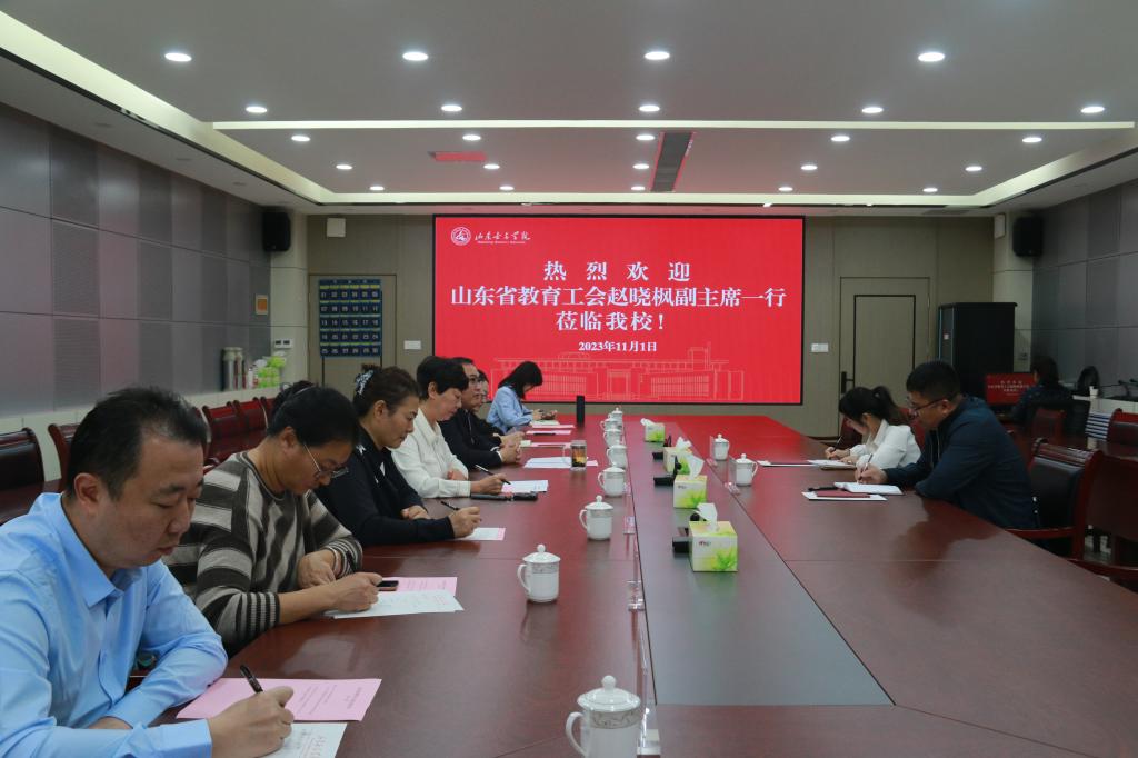 11月1日下午,山东省教育工会副主席赵晓枫一行来校调研,党委副书记龙希利出席座谈会。工会主席、妇委会主任李丽华以及相关分会主席参与座谈交流。