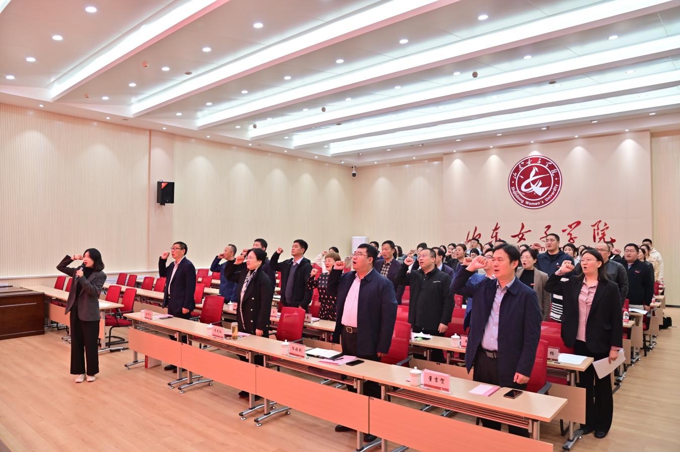 仪式上,全体教师高举右手,进行了庄严的教师宣誓。