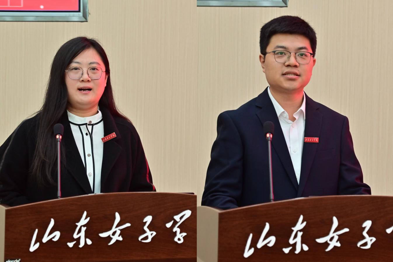 新教师代表经济学院杨扬博士发言,她首先感谢学校在新教师入职过程中提供的诸多帮助。下一步,自己将以诚恳的态度和饱满的精神投入到以后的工作中去,争取在最短的时间熟悉教学工作,早日出成果,为个人和学校获得更多荣誉。