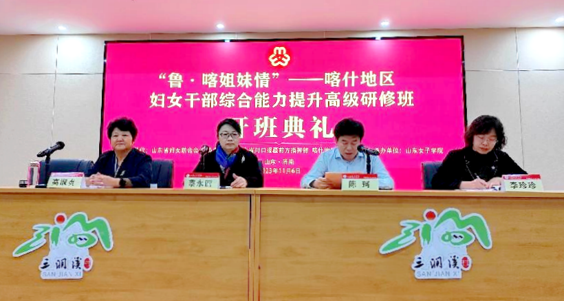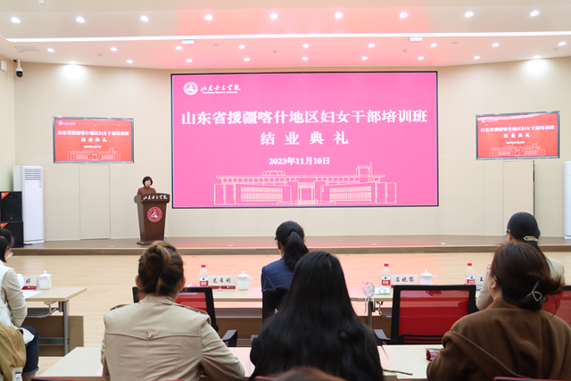 近日,由山东省妇女联合会主办、山东省对口援疆前方指挥部和喀什地区妇女联合会协办、学校承办的新疆喀什地区妇女干部综合能力提升高级研修班圆满结束。学校党委书记吕晓黎、党委副书记龙希利、新疆维吾尔自治区妇联办公室副主任蔡永丽、山东省妇女联合会权益部部长王丽臻出席研修班结业典礼,新疆喀什地区参训妇女干部40余人参加研修班。