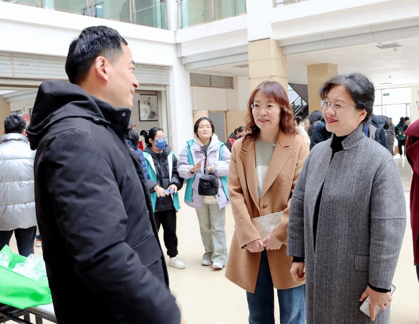 近日,学校访企拓岗促就业专项行动暨外语类专场校园招聘会在博文楼大厅顺利举办。校长李光红带领招就处、外国语学院相关负责人深入活动现场,与参与单位及学生开展深入交流。