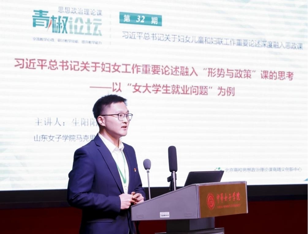本次论坛的主题为习近平总书记关于妇女儿童和妇联工作重要论述深度融入思政课,来自北京、山东、上海、海南、陕西、湖南等多地高校的7位青年教师先后聚焦主题进行教学展示。学校青年教师生阳阳从女大学生就业的角度,从为何融、融什么、怎样融三个方面分享了习近平总书记关于妇女工作重要论述融入“形势与政策”课的思考和体会,汇报了采取问题驱动教学法、典型案例教学法、挖掘身边实际榜样和体现专业特色四步打好教学组合拳,提升教学感染力、亲和力、针对性和实效性的设计思路。