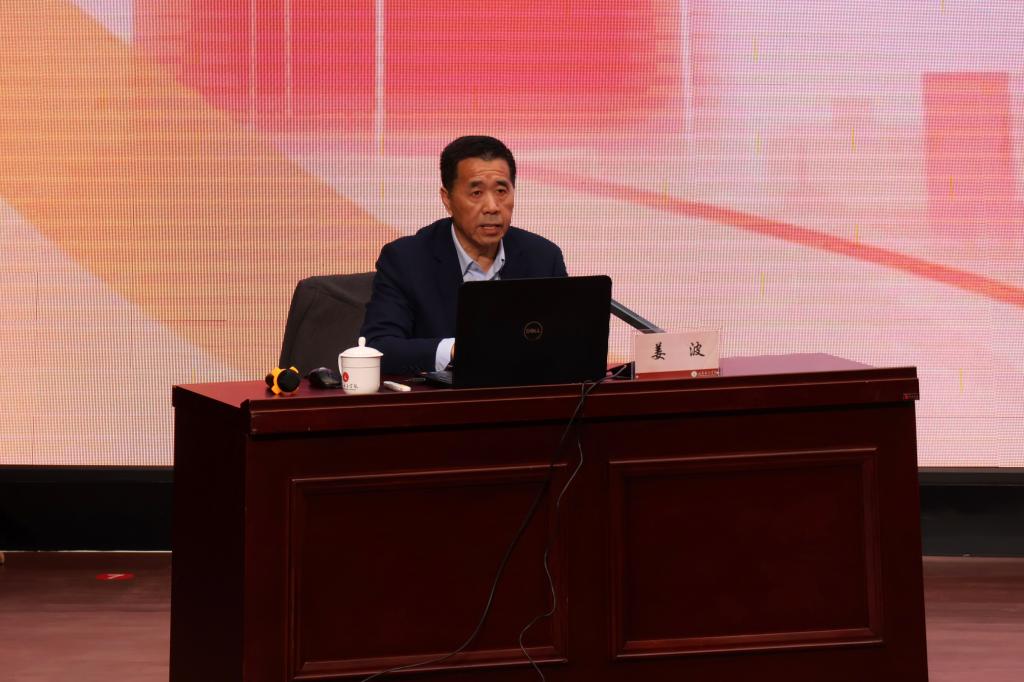 讲座前,全体学员共同观看了由姜波教授创作的《立德树人跟党走》主题纪录片、《党的好干部》主题曲。