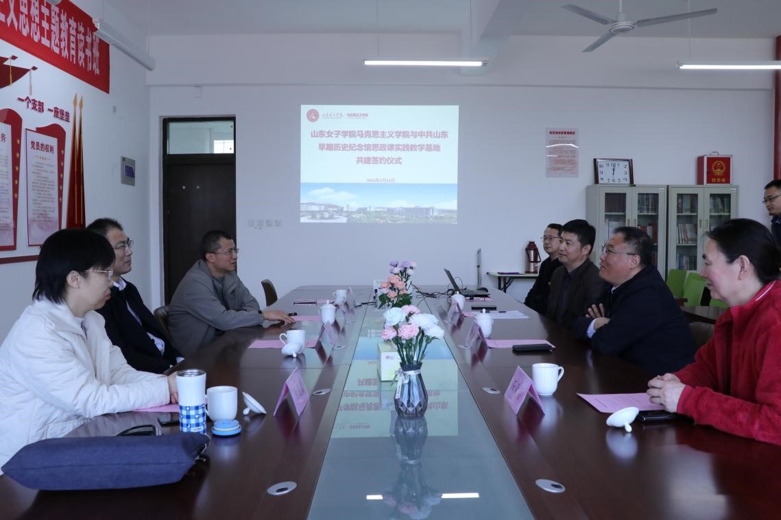 为进一步提升学校思政课实践教学效果,3月14日,马克思主义学院与中共山东早期历史纪念馆签订思政课实践教学基地共建协议。学校党委副书记龙希利、济南市委宣传部部务委员王庆会、中共山东早期历史纪念馆馆长李涛、马克思主义学院党总支书记王永泉、院长姚树欣等参加活动。
