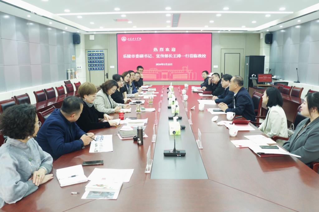 3月22日上午,乐陵市委副书记、宣传部部长王涛一行来校交流座谈。学校党委副书记、校长李光红出席座谈会,党委委员、副校长李缨主持。合作发展处、招生就业处及相关院部负责人参会。
