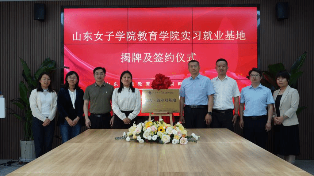 山东童恩教育科技有限公司总经理付立涛等与教育学院负责人进行座谈交流,双方就实习就业、产学研合作等展开深入探讨,并参观了童恩教育游戏材料教研基地。随后,双方签订《实习就业双基地协议》并共同揭牌,正式建立合作关系。