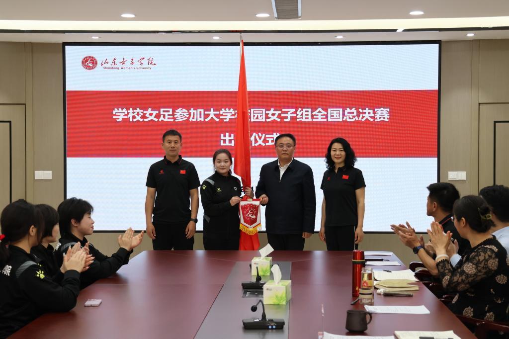体育教学部负责人刘淑芬、学校女足教练员代表曹斌、女足队员代表廖芷轩依次发言。龙希利作总结发言,他首先代表学校向女足队员们、教练员们在省赛中取得的优异成绩表示祝贺。过往省赛成绩来之不易,即将征战国赛使命光荣,龙希利提出四点要求。他希望队员们,一是努力拼搏,奋勇争先。为学校争光,为山东争光。二是赛出风格、赛出水平,实现竞赛成绩和精神文明的双丰收。三是严守纪律、确保安全,成立临时团支部。四是要加强宣传,凝练女足精神,发掘好、提炼好、展示好相关经验做法,让女院女足精神得到进一步巩固继承,并发扬推广。