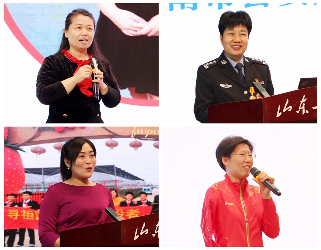 为深入学习宣传习近平新时代中国特色社会主义思想和党的二十大精神,大力弘扬劳模精神、劳动精神、工匠精神,5月16日,学校图书馆二楼报告厅举办“巾帼大宣讲 匠心逐梦 强国有我——巾帼劳模工匠精神进校园宣讲会”,本次活动也是落实全省教育系统“中国梦·劳动美”主题宣传教育活动的重要举措。山东省教育工会委员会主席王贞,学校党委书记吕晓黎,纪委书记、监察专员杨恩红,副校长田立新,长清区妇儿办副主席闵婷婷出席会议。山东省三八红旗手、北京理工大学前沿技术研究院常务副院长陈雪梅;全国五一劳动奖章、全国五一巾帼标兵获得者,济南市公安局槐荫分局营市街派出所社区民警、三级高级警长吴颖;济南市青联杰出成就奖、齐鲁乡村之星获得者,济南市草莓协会会长、山东佰瑞农业科技发展有限公司董事长杨馥羽;山东省三八红旗手、山东新润体育总经理刘旭担任宣讲嘉宾。学校副处级以上干部、党支部书记、思政课教师、辅导员、学生代表350余人参加宣讲会。会议由学校党委副书记龙希利主持。