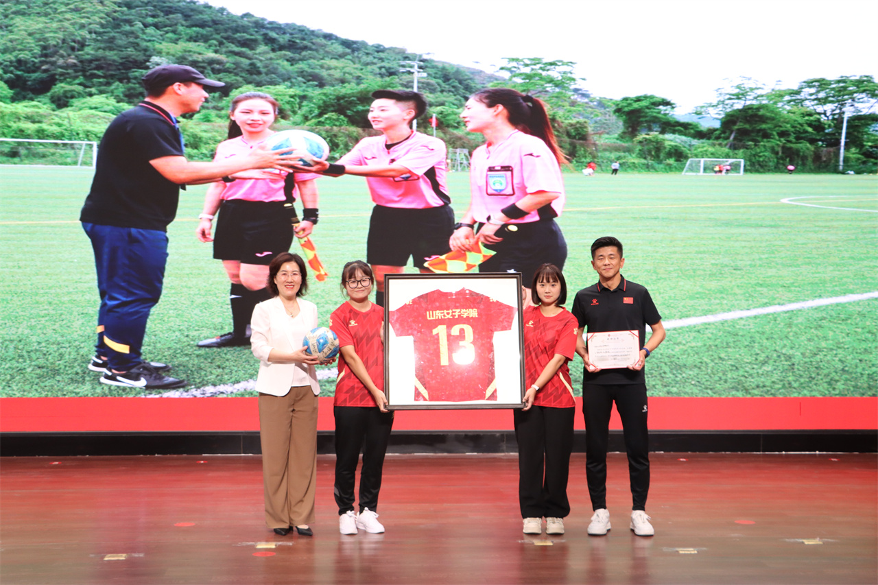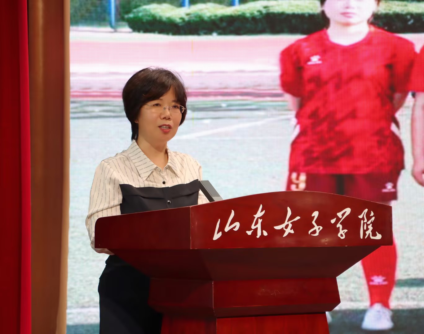 吕晓黎用自豪、激励和启迪三个关键词总结了女足队员带给全校师生的感动。她表示,在刚刚结束的2023-2024全国青少年校园足球联赛大学女子组总决赛中,学校女足获得全国第五名的好成绩,不仅创造了学校的历史,也创造了山东高校代表队在此项赛事中的最好成绩。她代表学校向全体队员、教练员们坚韧不拔、勤学苦练致以诚挚问候,向队员们、教练员们超越自我、为校争光、为省争光,表示热烈祝贺!她指出,学校女足最值得发扬和大家学习的是梦想、拼搏和团结三个关键词,她们无畏、坚韧、执著的优秀品质是女院精神重要组成部分,也是女院人砥砺前行、突破进取的一个缩影。她表示,要深入学习习近平总书记对于学校思政课建设作出的重要指示,全面贯彻党的教育方针,落实立德树人根本任务,紧扣时代新征程教育使命,不断开创新时代思政教育新局面。