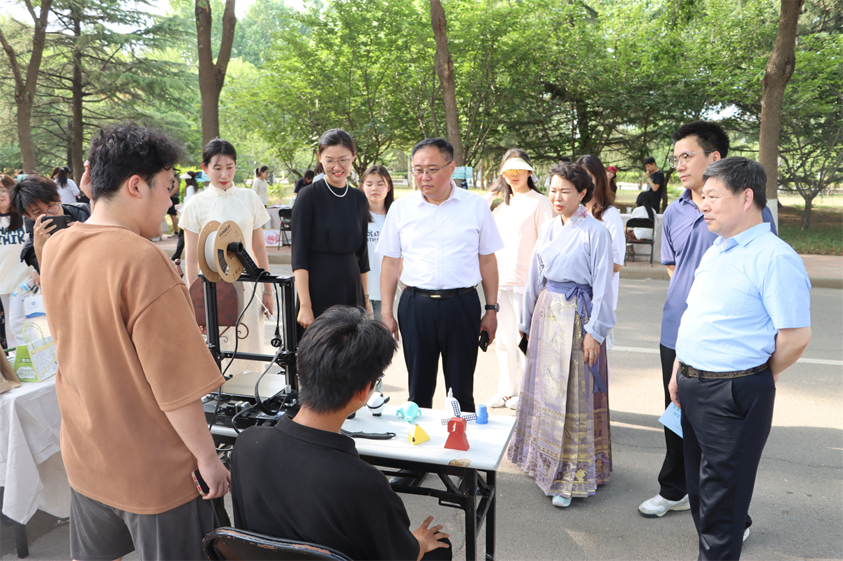 随后,领导嘉宾们共同参加“尚美”雅集,体验传统手工艺,参观文化创意市集。艺术设计学院毕业生代表刘清阁表示:“这次文化艺术节不仅让我们感受到了中华优秀传统文化的无穷魅力,更让我们体会到了庄重又富有意义的仪式感。母校用情至深,我会继续努力,不辜负女院的培养和师长的厚爱。”