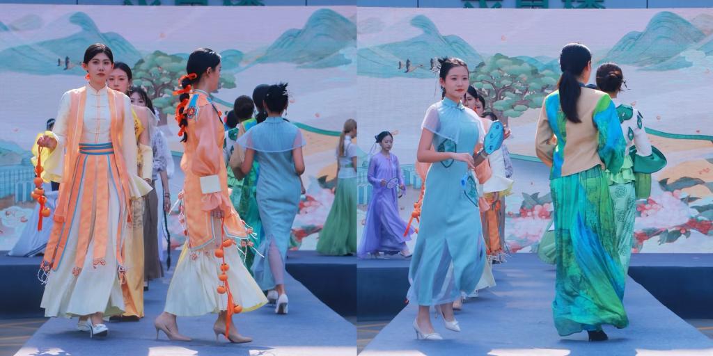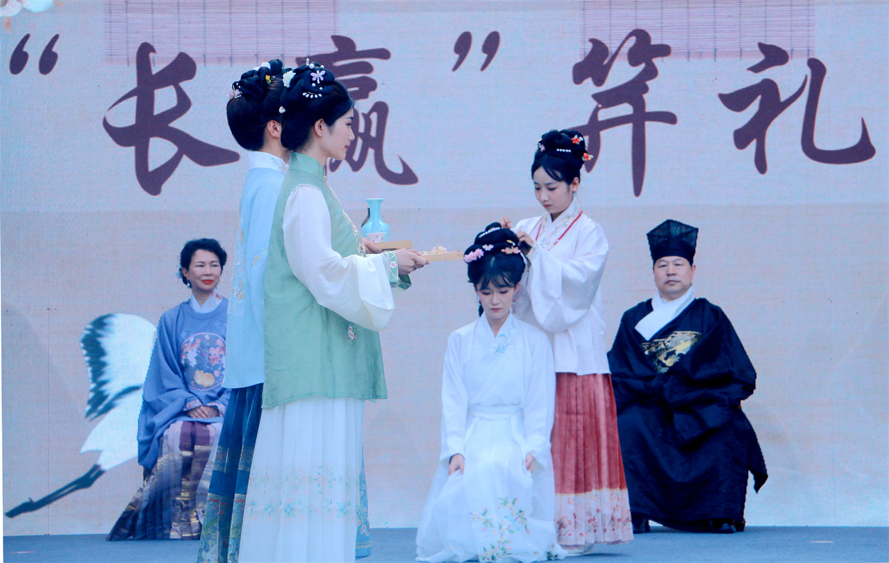伴随悠扬的民乐声响起,“礼韵”服装艺术作品秀拉开了开幕式的帷幕。结合传统文化和女院元素,艺术设计学院师生设计展示了童装、礼仪装、学士服等19个系列、54套服装,由女院附属幼儿园的小朋友和在校师生共同展示,表达了设计师对母校的感恩与眷恋。“长嬴”笄礼是本届文化艺术节最具特色的环节,学校师长为优秀毕业生加笄、赐字,祝福他们进取向前,前程似锦。