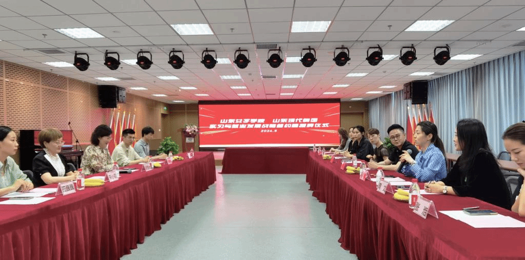 在山东现代舞团,山东现代舞团执行团长王保兴陪同参观企业,随后,校企双方进行座谈交流。山东省济南市历下区文化馆副馆长马莉对刘恩允一行的到来表示热烈欢迎,介绍了文化馆发展现状及人才需求情况,希望深入沟通共促发展。王保兴介绍了山东现代舞团近年来在发展历程、舞团结构等方面的情况。刘恩允介绍了学校近年来的发展规划及建设成果,希望双方持续深化产学研合作,搭建校企合作平台,共同促进女院毕业生高质量就业。宋小霞详细介绍了音乐学院在学科建设、人才培养、科学研究、师资队伍和社会服务等方面取得的成绩。与会人员开展了深入的座谈交流。随后,双方签订实习就业双基地协议。