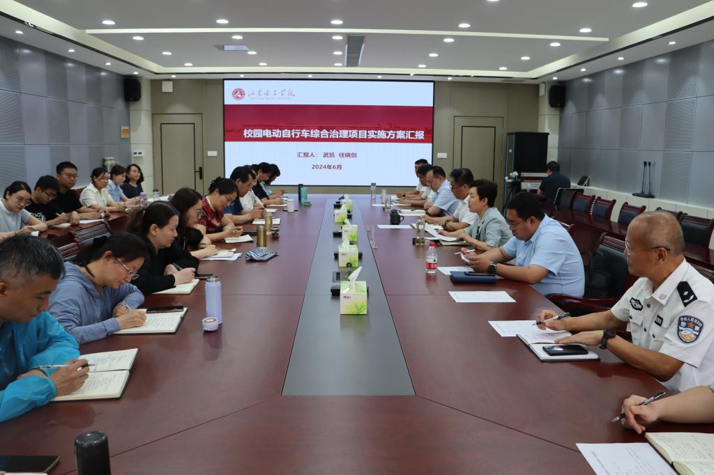保卫处负责人武凯首先汇报了校园电动自行车综合治理工作实施方案和下一步工作安排;学生处负责人任晓剑汇报了“转识成智 匠心育人”质量提升工程及电动自行车项目治理小组工作情况;部分参会代表进行了交流发言;各部门、单位和二级学院学工办主任对相关工作开展进行了交流讨论,并提出了意见建议。