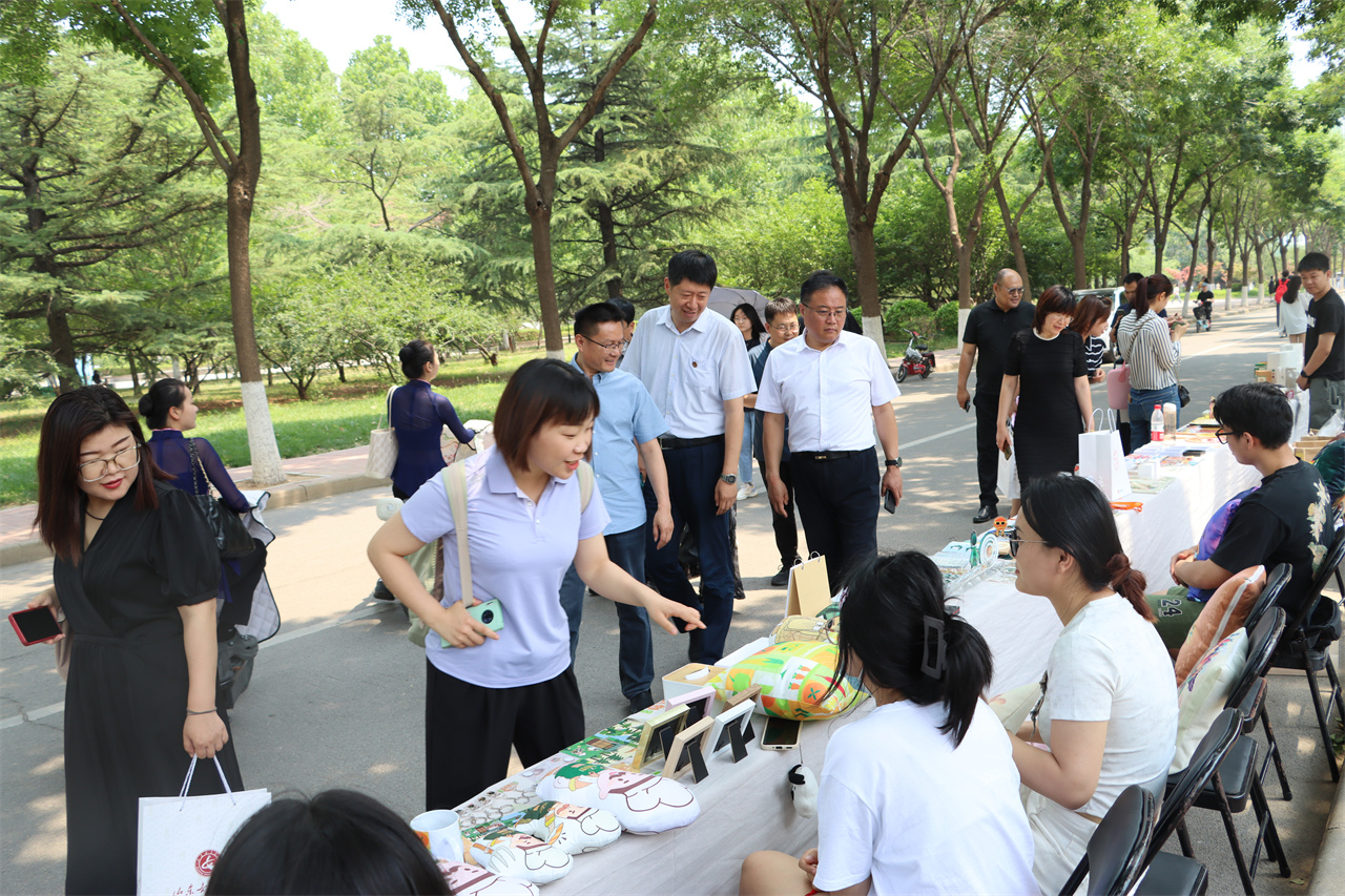 见面会结束后,媒体代表们参观了艺术设计学院毕业作品展并就感兴趣的话题在校内采风。