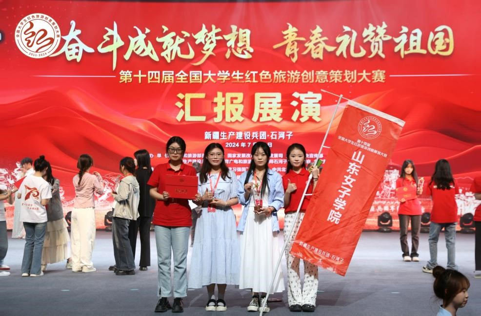 以“奋斗成就梦想,青春礼赞祖国”为主题的第十四届全国大学生红色旅游创意策划大赛(以下简称“红旅大赛”)决赛于7月8日至11日在新疆石河子市举办。由旅游学院王宇、杨艳老师指导,旅游管理专业李琳、张晓迪、魏晴、刘爽同学组成的团队“从容应队”以第二名的好成绩荣获全国总决赛一等奖和最佳创意奖。