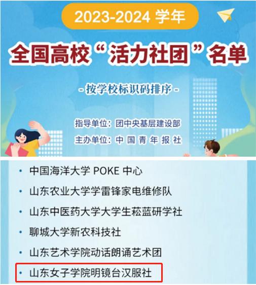 近日,团中央基层建设部指导、中国青年报社开展2023—2024学年全国高校“活力社团”风采展示活动,学校明镜台汉服社经校内选树、省级展示、全国展示和投票等环节,成功入选2023—2024学年全国高校“活力社团”(全国100个),全省共8所高校入选。