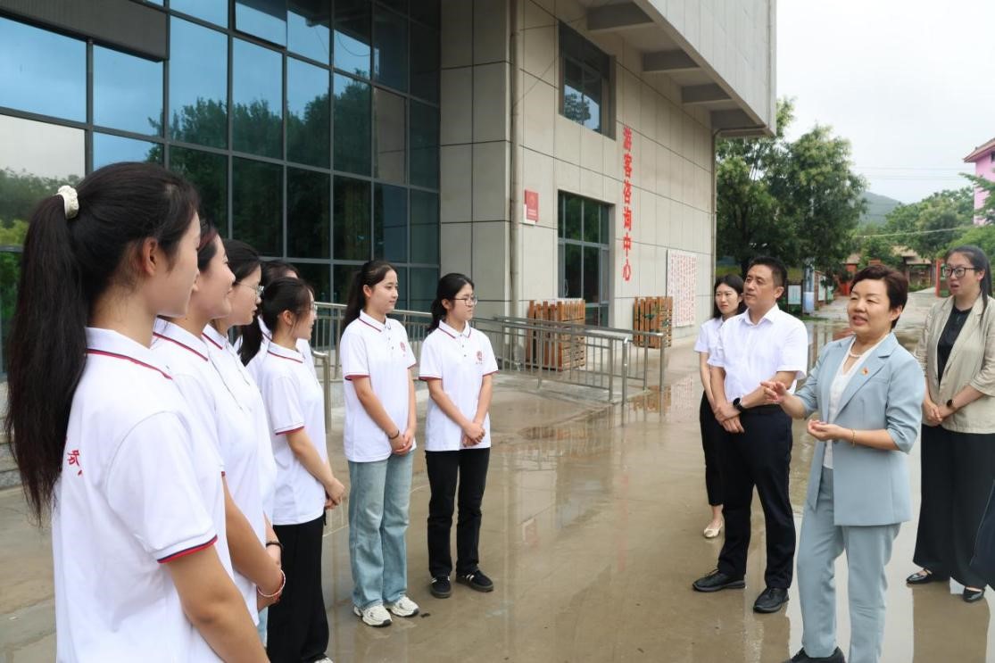仪式结束后,田立新看望正在此地社会实践的会计学院师生并与他们亲切交流,她指出,社会实践经历是大学生的一笔宝贵财富,希望同学们自觉立德成才,与党同心、跟党奋斗,把忠诚书写在党和人民的事业中,结合自身专业特长,在社会实践中主动了解国情民情乡情,勇于担当、甘于奉献、磨炼意志、施展才华,将理想扎根乡村大地,把自己所学在实践中检验,彰显女院学子的青春风采。