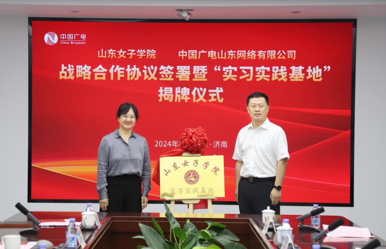 7月16日,学校与中国广电山东网络有限公司战略合作协议签署暨“实习实践基地”揭牌仪式在济南举行。党委副书记、校长李光红、中国广电山东网络有限公司党委书记、董事长谢宁出席仪式并为“实习实践基地”揭牌。学校党委委员、副校长李缨,中国广电山东网络有限公司党委副书记、董事陈承聚代表双方签约,公司党委委员、副总经理刘翠立主持仪式。