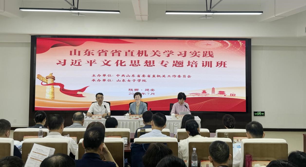 7月21日至26日,山东省省直机关学习实践习近平文化思想专题培训班在延安文化交流中心举行。此次培训班由省委省直机关工委主办,山东女子学院承办。省委省直机关工委副书记邹霞出席开班式并讲话,学校党委书记吕晓黎致辞,省委省直机关工委宣传部部长许珂主持,部分省直部门单位和市委市直机关工委分管理论武装工作负责同志,共80余人参加培训。