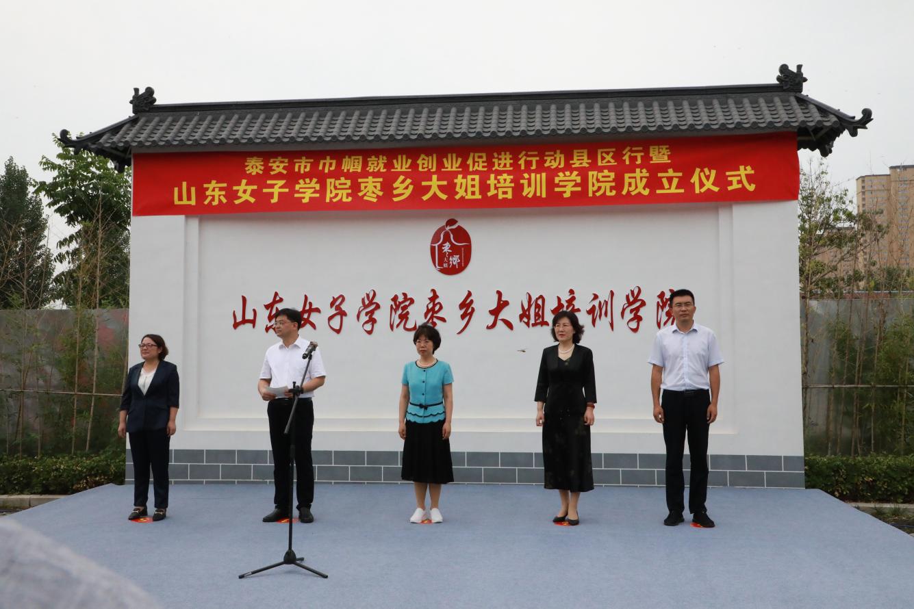 8月9日,山东女子学院枣乡大姐培训学院成立仪式在宁阳县举行。学校党委书记吕晓黎,副校长刘恩允,宁阳县委书记王立军,省妇联发展部副部长杲磊,泰安市妇联党组书记、主席苏伟丽出席仪式,宁阳县委副书记刘富强主持仪式。校党委、院长办公室,招生就业处,继续教育学院负责人以及省派驻宁阳工作队参加活动。
