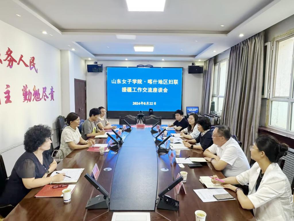 考察组一行与喀什地区妇联座谈交流。喀什妇联党组书记、副主席马新华对学校一行到来表示热烈欢迎,对学校承办的喀什地区妇女干部培训班效果给予高度评价,表示期待山东女子学院从干部队伍能力提升、女性创业就业、儿童发展等方向提供帮助支持,加强合作交流。吕晓黎介绍了近年来学校在人才培养、应用研究和社会服务方面的特色办学成果,表示将积极发挥女子高校学科专业优势和师资力量,与喀什地区妇联密切交流、深化合作,为喀什地区妇女儿童事业发展贡献力量。
