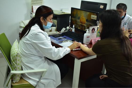 在义诊过程中,两位专家以高超的医术仔细诊脉辩证开方,提醒日常健康注意事项,耐心细致地解答老师们提出的各种健康问题,有的老师还携带了近期的体检报告,专家们为其详细解读、分析,提出专业治疗建议。一同前来的新中鲁医护人员为老师们线上录入药方并实现医保统筹报销,免费代煎中药邮寄到家,全程看病拿药比去医院更加方便快捷。前来体验的老师们对此次义诊活动赞不绝口。
