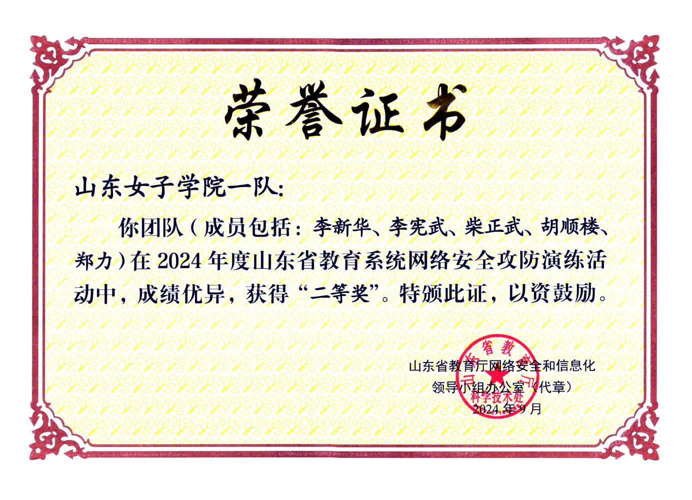 学校网络安全工作负责同志同时参加了山东省校园日活动。在山东省教育厅网络安全和信息化领导小组办公室组织举办的2024年度山东省教育系统网络安全攻防演练活动中,我校荣获二等奖,这是我校在该活动中连续第三年获奖。