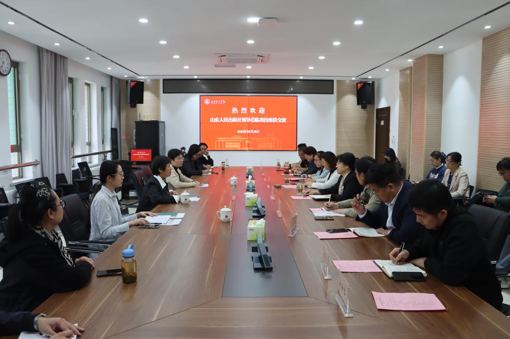 10月10日,山东人民出版社副总编辑袁丽娟、三编室副主任郑安琪一行来校进行座谈交流。双方围绕教学科研成果出版、项目与奖励申报、学生实习实践、产学研深度合作等多个方面展开深入探讨。校长李光红,副校长李缨出席座谈会,相关职能部门、二级院部负责人和教师代表等20余人参加座谈。