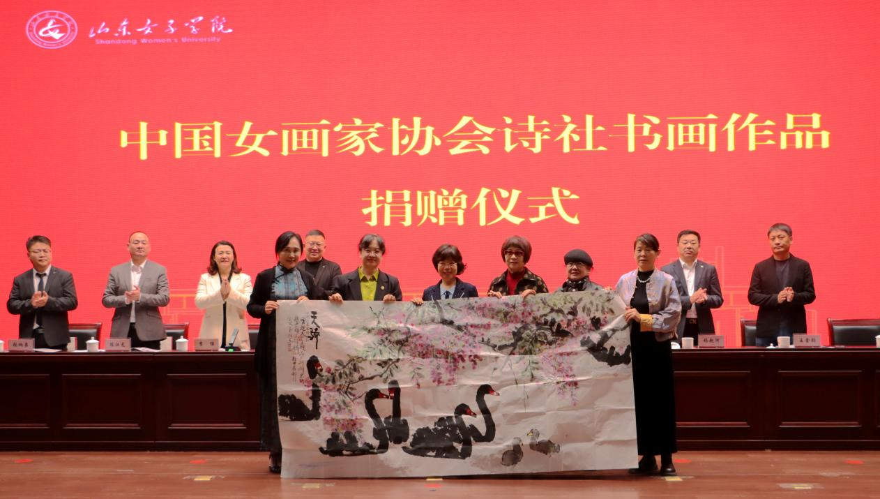 会议现场同时举办了中国女书画家协会诗社负责人书画捐赠仪式及“益启同行 挚爱女院”庆祝山东女子学院成立72周年捐赠活动。