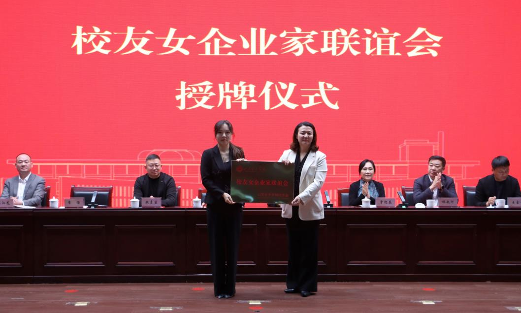 随后,在大会校企产学研对接交流环节,李光红与济南市青年企业家协会秘书长杨赵河分别代表校企双方签订了战略合作协议并现场揭牌校企产学研基地。李缨为校友女企业家联谊会授牌。校友张明云当选为轮值会长。