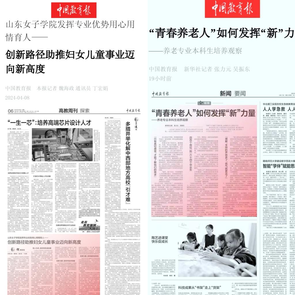 近年来,在学校党委的坚强领导下,在各部门单位的共同努力下,学校宣传思想文化工作呈现出积极向上的发展态势。突出“宣传也是生产力”,牢牢把握正确舆论导向,弘扬主旋律、传播正能量,努力讲好女院故事、传播女院声音赋能学校形象塑造,入选2023“山东教育融媒TOP100优秀教育账号”。今年以来,《中国教育报》刊发《山东女子学院发挥专业优势用心用情育人——创新路径助推妇女儿童事业迈向新高度》《“青春养老人”如何发挥“新”力量——养老专业本科生培养观察》等多篇学校专题文章,有力地提升了学校的知名度、美誉度与社会影响力。