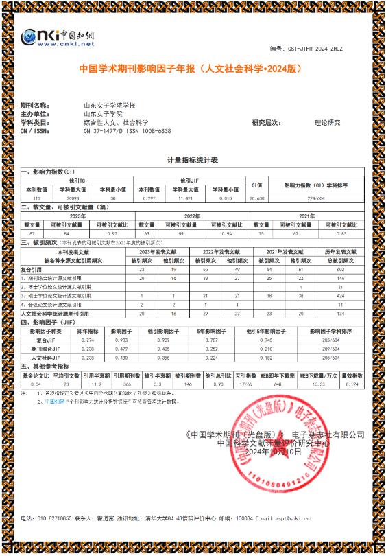 近日,《中国学术期刊影响因子年报(人文社会科学版·2024版)》正式发布,学校学报的影响力指数CI由2022年的13.964提升至2023年的20.630,CI学科排序由2022年的276位提升至2023年的224位,复合影响因子由2022年的0.944提升至2023年的0.983,综合影响因子由2022年的0.325提升至2023年的0.479。刊物影响力稳步提升,各项影响力指标再创新高。