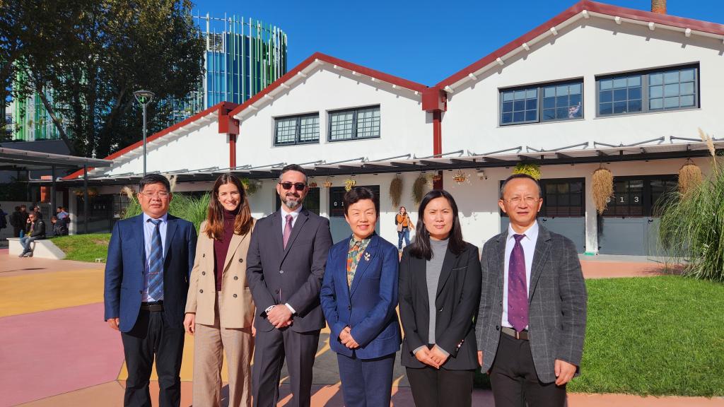 在意大利米兰工业设计学院,访问团在Laura Fassi女士的引导下参观了整个学校园区、教学场所及图书馆,与学校的学生进行了亲切的交流,随后访问团在罗马艺术大学米兰校区观摩了该校和重庆大学美视电影学院合作举办的针对中国电影《乒乓:归来》的联合教学活动。