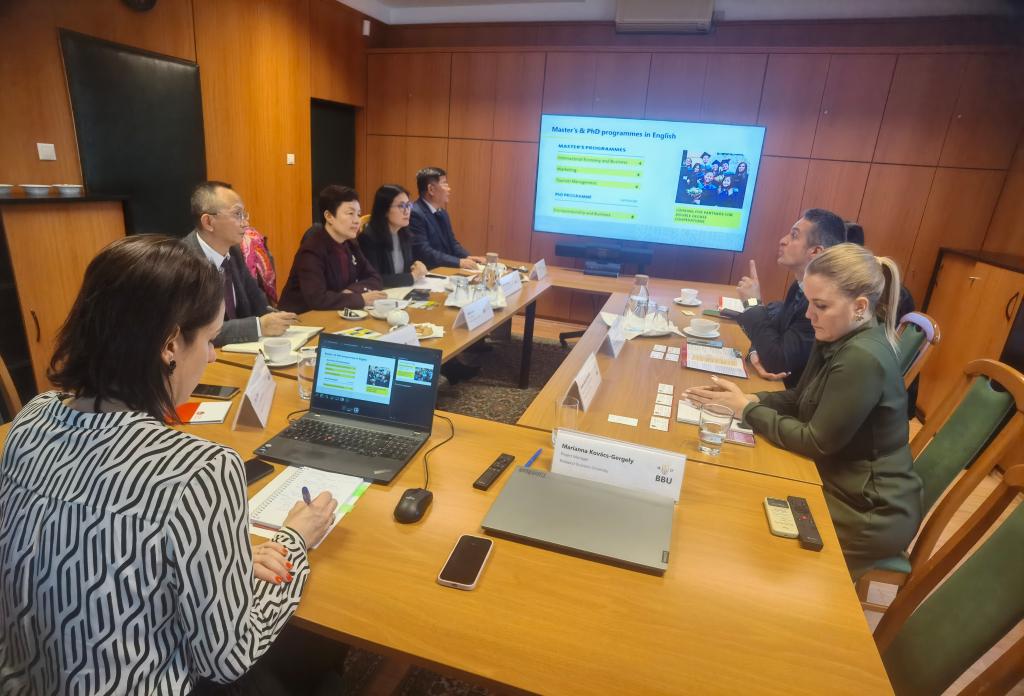在布达佩斯国际商学院,访问团与该校招生副校长László Lendvai等座谈,就学生交流、教师访学以及学术合作等方面进行了深入的交流。访问团重点参观了该校的教学楼与图书馆。