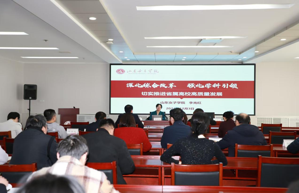 在座谈会前,李光红应邀作了题为《深化综合改革强化学科引领——切实推进省属高校高质量发展》的学术报告,报告从认识教育评价改革的重大意义、教育评价改革的主要目标任务、女院评价改革的探索与实践这三方面阐释了省属高校落实国家教育评价政策以及我校的具体做法,报告受到与会人员的一致好评。