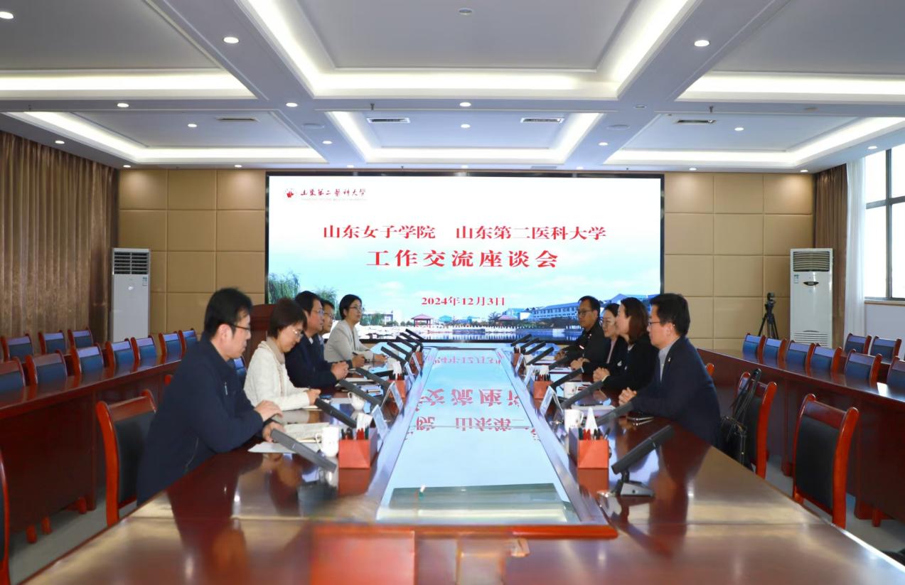 管英俊对李光红一行来访表示热烈欢迎,就两校间长期以来的合作给予充分肯定。王承高介绍了山东第二医科大学的办学情况以及能与我校对接的学科专业领域。李缨简要介绍了学校的办学情况及相关合作项目需求。双方在高校综合改革的思路与实践、学位授权单位建设以及教育教学评估等方面进行了深入的讨论。