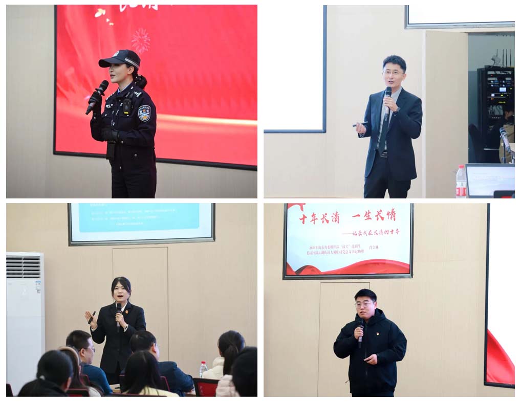 活动现场,济南市长清区政法系统“轻骑兵宣讲队”4名成员依次作了《交通法与“爱”的关系》《手机里的法律问题 》《大学生实用法律知识》《十年长清一生长情》主题宣讲,并与师生进行互动交流。区公安分局交警大队青年干警庞漪以交通安全宣传警示教育片为切入点,以身边事警示,提醒师生自觉遵守交通道路法规,文明交通。天齐律师事务所律师史晓猛围绕当下时政热点和身边典型案例,以使用手机可能遇到的法律问题,引导师生规范合理使用手机,避免引起法律纠纷。区法院刑庭干警朱建宇结合大学生实际,讲解了在工作与恋爱中隐藏的诸多法律问题。崮云湖街道选调生肖金林分享了自己在长清求学与工作的十年历程,从学生视角讲述了从青春懵懂到扎根乡土、实现梦想的奋斗故事。整场宣讲在理论讲解的基础上,采取趣味互动、有奖问答、情景演绎等形式,再现身边典型案例,活跃现场氛围,“沉浸式”讲好每一个法治故事,面对面讲透法律知识,实打实留下防范举措。