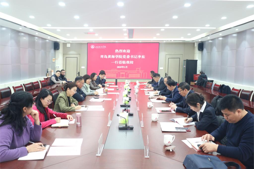 1月10日,学校与青岛黄海学院签署战略合作协议。青岛黄海学院党委书记李东,党委副书记、副校长孟广东,党委委员、副校长刘纪新出席签约仪式。学校党委书记吕晓黎,党委副书记龙希利,党委委员、副校长李缨,副校长田立新接待青岛黄海学院来访团一行,两校相关职能部门及部分二级学院负责人参加签约仪式。仪式由龙希利主持。