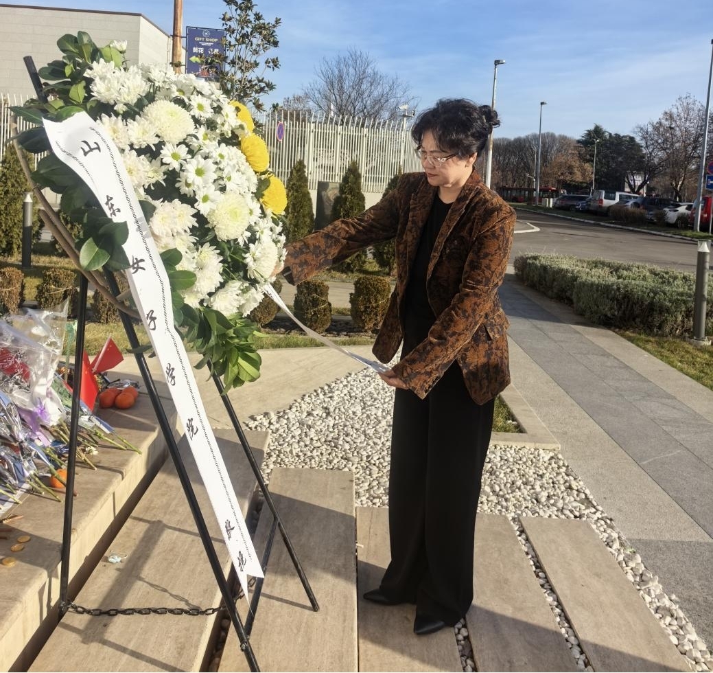 校长李光红一行赴中国驻南斯拉夫联盟大使馆旧址举行悼念仪式