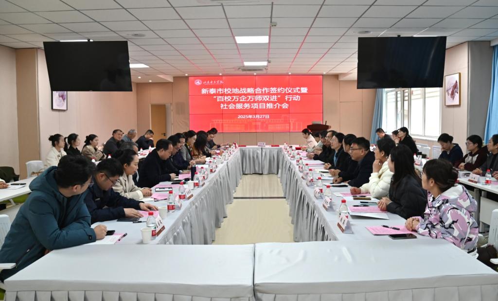 3月27日上午,山东女子学院——新泰市人民政府校地战略合作签约仪式暨“百校万企万师双进”行动社会服务项目推介会在学校举行。新泰市副市长匡卫,学校党委委员、副校长李缨出席活动并讲话。学校和地方相关部门、单位负责人以及新泰市18家企业代表参会。会议由合作发展处负责人主持。