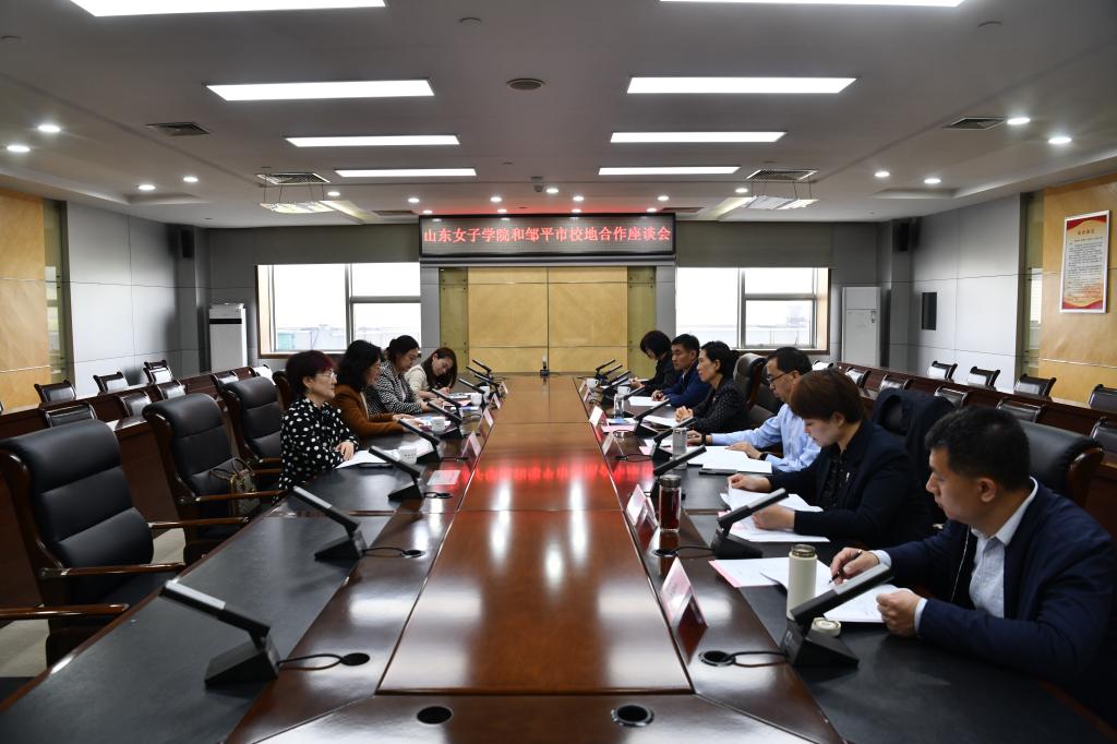 会上,张欣系统介绍了邹平市历史人文风貌以及近年来社会各项事业发展情况。刘恩允介绍了学校历史沿革、学科专业布局,以及在紧密对接国家和山东省发展战略,主动服务妇女儿童、老龄事业发展,全力打造“1+3+N”特色发展模式进程中所取得的一系列标志性、突破性成果。双方就区域美育机制建设、非遗文化传承创新、文旅融合发展、文创产品设计、师资培训教育等等领域展开深入交流,进一步明确了校地合作方向。