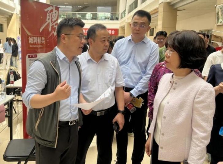 4月17日,党委书记吕晓黎到数据科学与计算机学院、社会发展学院、工商管理学院春季专场招聘会现场调研指导。党委副书记龙希利,党委委员、副校长田立新,党委、院长办公室,党委宣传部,党委组织部,学生工作处,团委及学院相关负责人参加活动。