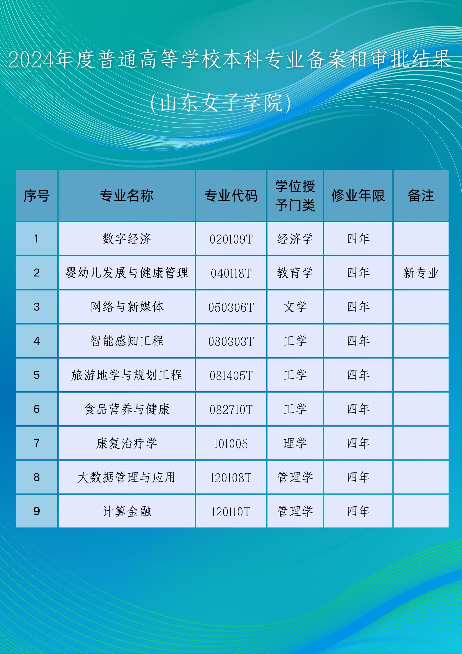 本次增设的9个本科专业,涵盖文学、理学、工学等六个学科领域,是学校深入贯彻落实《山东省普通高等教育学科专业设置调整优化改革实施方案》有关文件的直接体现。新获批专业紧密对接国家战略部署、市场需求变革和科技发展趋势,精准锚定高素质应用型人才培养目标,是学校拓宽学科专业领域,深化专业内涵建设,推进高水平应用型女子大学建设的关键布局。