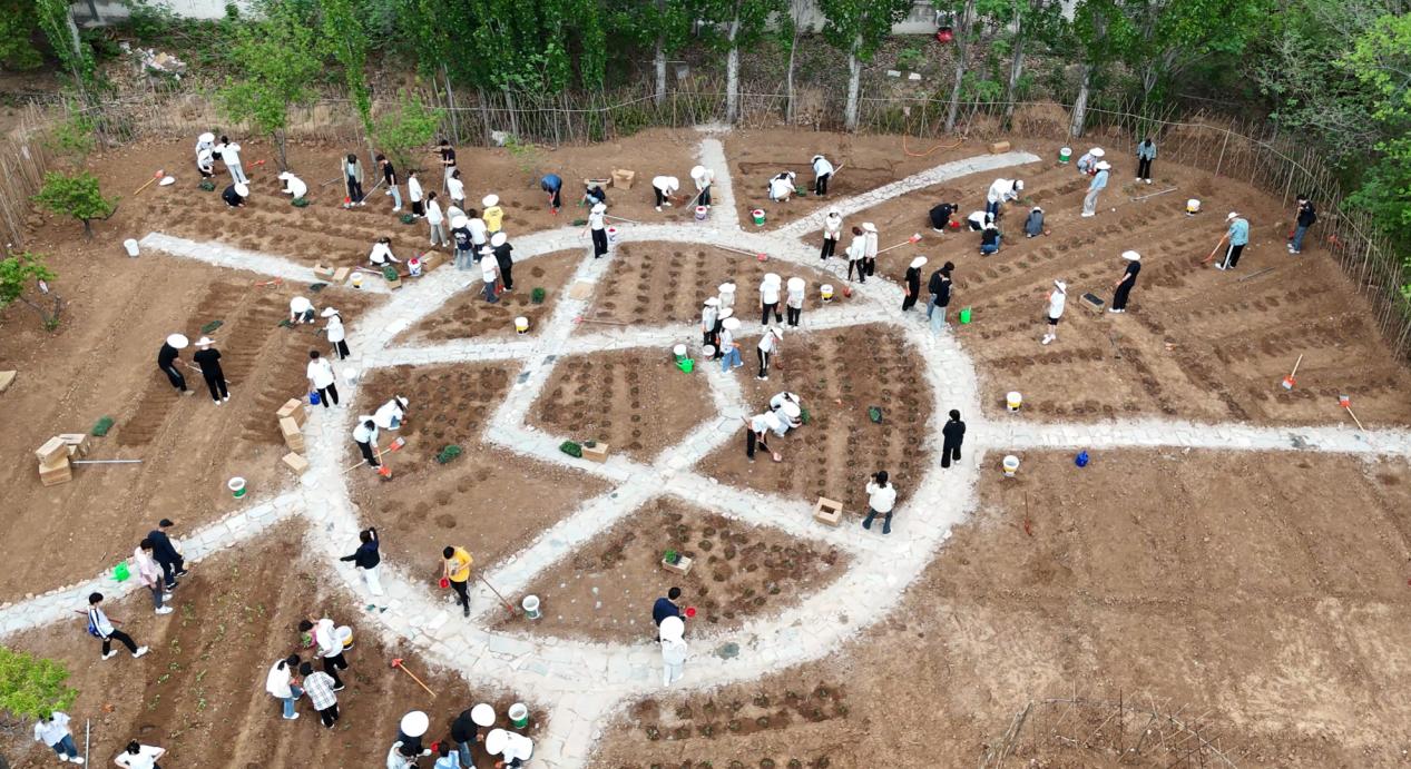 随后,现场的领导老师和同学们移步种植区,共同栽下第一棵菜苗。基地以独特的“女”字布局,划分12个区域,将分季节种植各类瓜果蔬菜。
